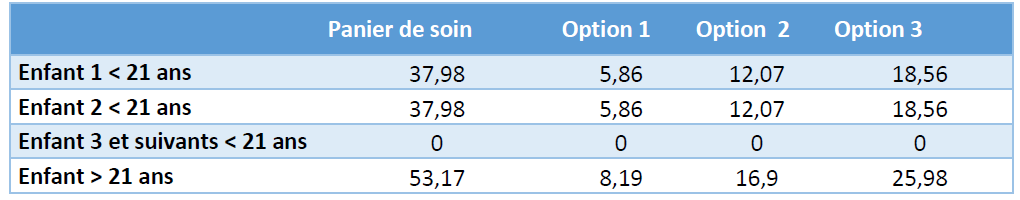 Si vos enfants, sont étudiants, il existe des mutuelles à partir de 10 euros. Pour les étudiants, nous recommandons de regarder de près les garanties suivantes :