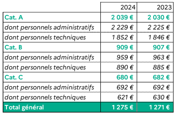 L’administration a souhaité communiquer sur des moyennes de CIA par catégories, ces montants sont précisés ci-dessous :