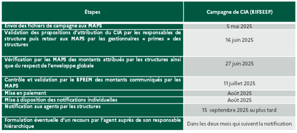 Cette réforme avait notamment conduit à avancer le mois de paiement du CIA à la fin de l’été afin que le versement soit le plus rapproché possible de la fin de la période des entretiens professionnels qui permettent d’apprécier et définir la manière de servir et l’engagement professionnel des agents.