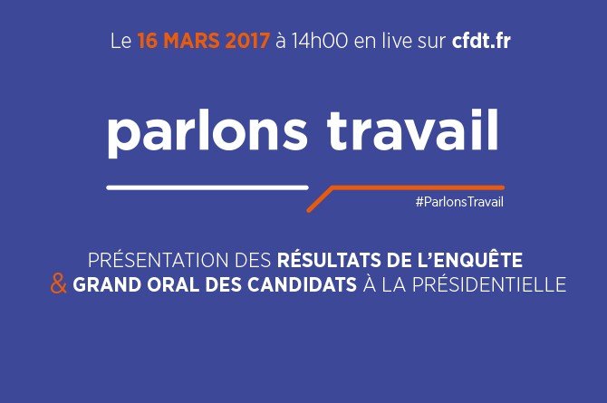 Par ailleurs, la CFDT présente jeudi 16 mars prochain à 9h30 les résultats de l’enquête Parlons Travail et à 14h30, interpelle quatre candidats à l’élection présidentielle sur ces thèmes.