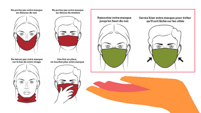 De même, le masque doit être correctement porté (voir illustration en tête de cet article).